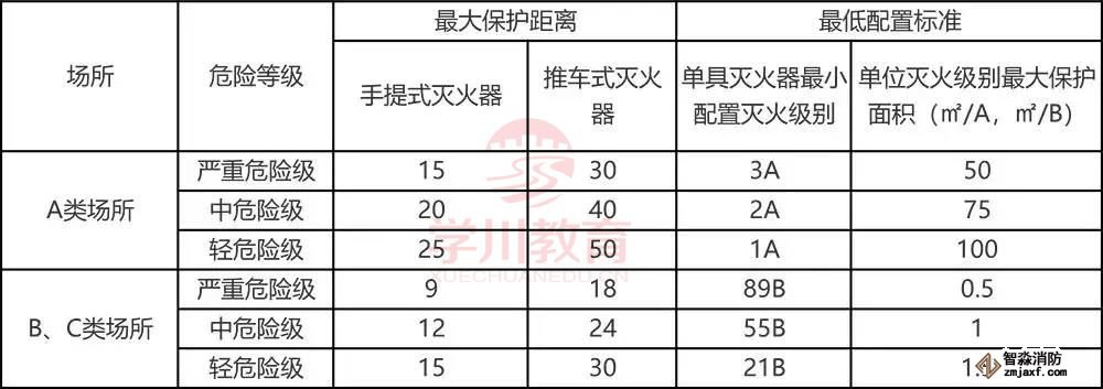 1)確定各滅火器配置場所的火災(zāi)種類和危險等級。